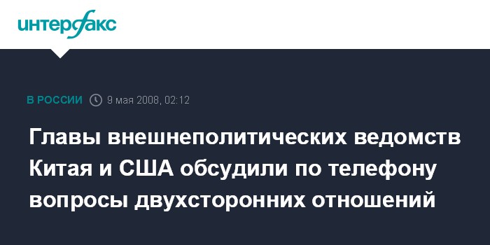 Пекин. 9 мая. ИНТЕРФАКС-КИТАЙ - Министр иностранных дел КНР Ян Цзечи и госсекретарь США Кондолиза Райс в четверг обсудили по телефону вопросы китайско-американский отношений, сообщили местные СМИ.