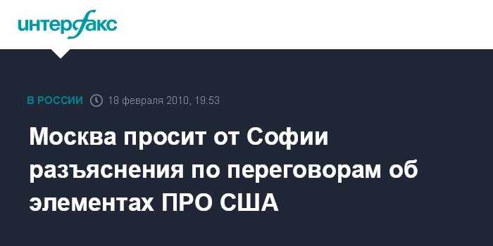 "В связи с появившейся информацией о ведущихся болгарскими властями консультациях с США о размещении элементов американской ПРО на территории Болгарии... российская сторона направляет официальный запрос о получении разъяснений о целях и существе таких переговоров", - говорится в сообщении МИД, размещенном на сайте ведомства в четверг.