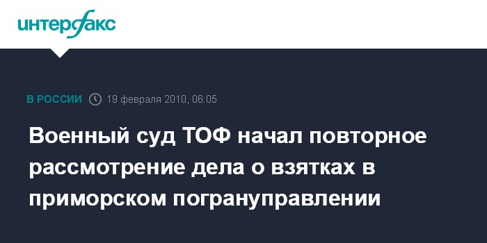 Военный суд ТОФ начал повторное рассмотрение дела о взятках в приморском погрануправлении