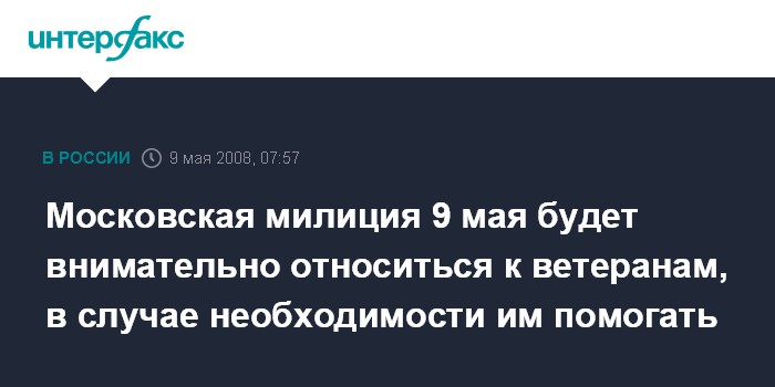 Московская милиция 9 мая будет внимательно относиться к ветеранам, в случае необходимости им помогать