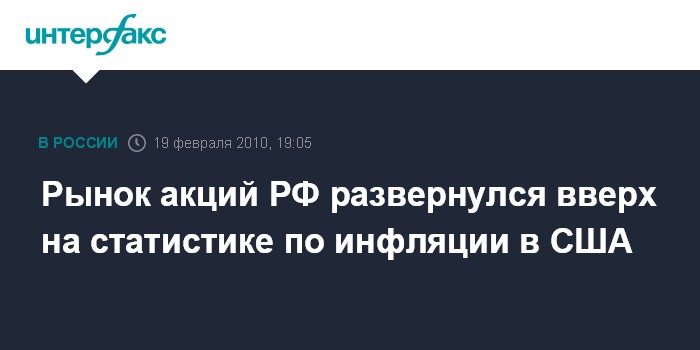 Москва. 19 февраля. INTERFAX.RU - Рынок акций РФ, упавший в начале торгов в пятницу после повышения Федеральной резервной системой (ФРС) США дисконтной ставки (discount rate), развернулся вверх и к закрытию вышел в ощутимый "плюс" на американской статистике по инфляции, развеявшей опасения ужесточения денежно-кредитной политики в США.