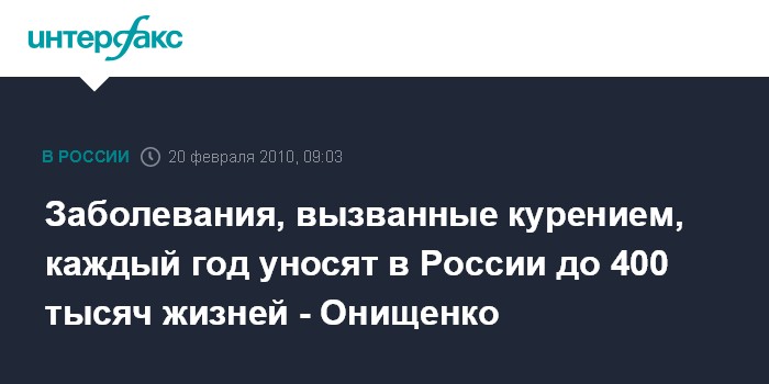 Заболевания, вызванные курением, каждый год уносят в России до 400 тысяч жизней - Онищенко
