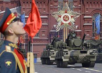Москва. 9 мая. INTERFAX.RU - На Красной площади Москвы 9 мая состоялся военный парад, посвященный 63-й годовщине Победы в Великой Отечественной войне, в котором приняли участие около 8 тысяч военнослужащих, более 100 единиц военной техники и свыше 30 боевых самолетов и вертолетов.