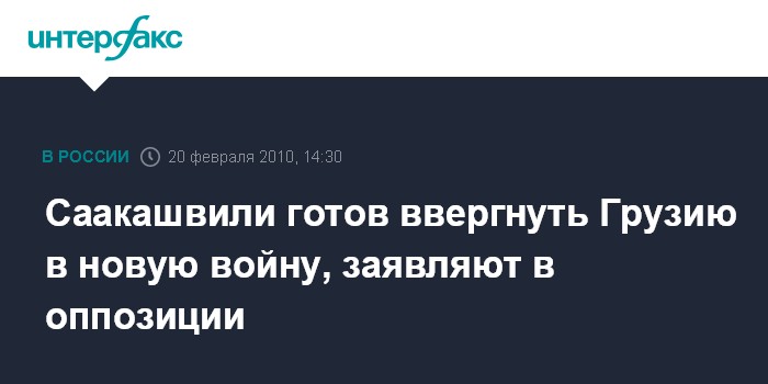 Тбилиси. 20 февраля. INTERFAX.RU - Оппозиционная партия "Демократическое движение - единая Грузия", лидером которой является экс-спикер парламента Нино Бурджанадзе, считает, что "усилиями президента Михаила Саакашвили и его окружения Грузия вновь стоит на пороге войны".