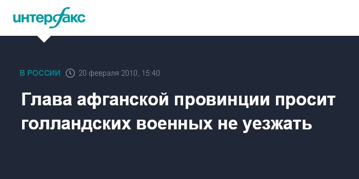 Лондон. 20 февраля. INTERFAX.RU - Глава провинции Урузган в центральном Афганистане Асадулла Хамдам заявил, что решение Нидерландов вывести свой вооруженный контингент из этого района отбросит назад все усилия по наведению порядка в регионе, передает в субботу британская телерадиокорпорация Би-Би-Си.