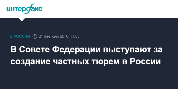 Москва. 21 февраля. INTERFAX.RU - Система исполнения наказаний в России должна пополниться частными тюрьмами, считает член Совета федерации РФ Евгений Тарло. "Нам нужно гуманизировать отбывание наказания, вплоть до создания частных тюрем. Это выгодно для государства, которое тратит колоссальные деньги на содержание заключенных", - заявил Е.Тарло "Интерфаксу". По его словам, этот опыт западной системы исполнения наказаний нужно перенимать. "Это новое для нас, но ведь в некоторых странах частные тюрьмы уже показали себя с хорошей стороны", - отметил Е.Тарло.
