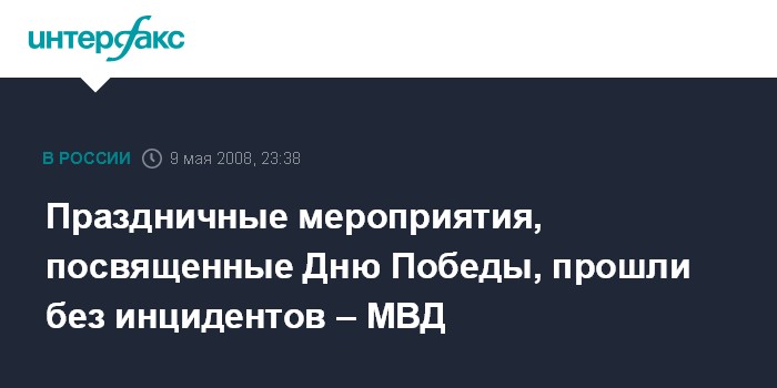 Москва. 9 мая. ИНТЕРФАКС - Празднование Дня Победы на территории России прошло без происшествий.