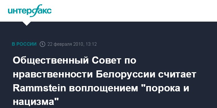 Москва. 22 февраля. INTERFAX.RU - Общественный совет по нравственности (ОСН) Белоруссии высказывается против проведения концерта Rammstein в Минске, который запланирован на 7 марта.