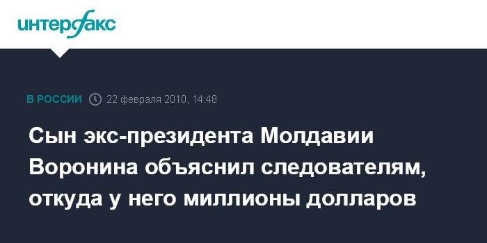 Москва. 22 февраля. INTERFAX.RU - Cын бывшего президента Молдавии Владимира Воронина Олег в понедельник дал показания следователям Центра по борьбе с экономическими преступлениями и коррупцией (ЦБЭПК).