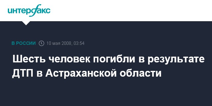 Ростов-на-Дону. 10 мая. ИНТЕРФАКС-ЮГ - В Астраханской области в ДТП погибли шесть человек, еще двое пострадали, сообщили агентству "Интерфакс-Юг" в субботу в пресс-службе Южного регионального центра МЧС РФ.