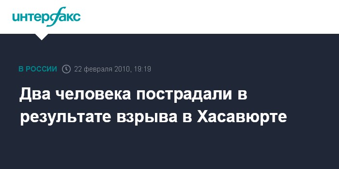 Махачкала. 22 февраля. ИНТЕРФАКС-ЮГ - Двое прохожих получили ранения в результате взрыва, произошедшего в понедельник в дагестанском райцентре Хасавюрт, сообщили "Интерфаксу" в пресс-службе МВД Дагестана.