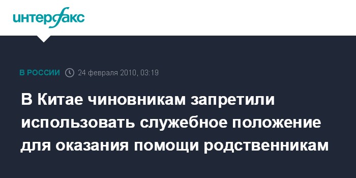 Пекин. 24 февраля. ИНТЕРФАКС-КИТАЙ - Сферы, в которых китайские руководящие чиновники не имеют права оказывать помощь родственникам, определил ЦК компартии Китая, сообщили в среду местные СМИ.