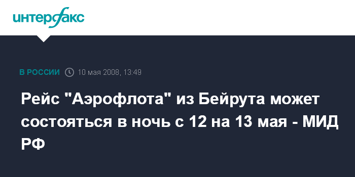 Рейс "Аэрофлота" из Бейрута может состояться в ночь с 12 на 13 мая - МИД РФ