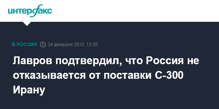 Лавров подтвердил, что Россия не отказывается от поставки С-300 Ирану