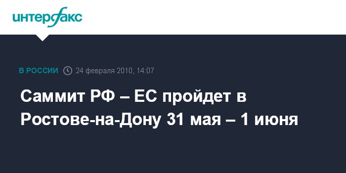 Москва. 24 февраля. INTERFRAX.RU - Саммит Россия - Евросоюз состоится в Ростове-на-Дону 31 мая - 1 июня этого года, сообщил глава МИД РФ Сергей Лавров.