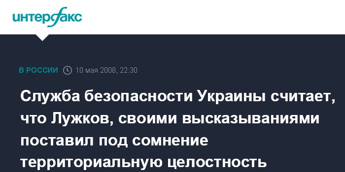 Служба безопасности Украины считает, что Лужков, своими высказываниями поставил под сомнение территориальную целостность Украины