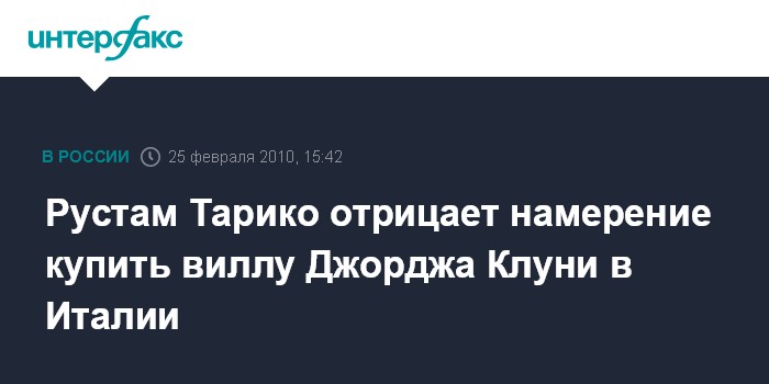 Москва. 25 февраля. INTERFAX.RU - Информация о планах Рустама Тарико купить у американского актера Джорджа Клуни виллу в Италии не соответствует действительности, заявил "Интерфаксу" представитель принадлежащего бизнесмену холдинга "Русский стандарт" Престон Менденхолл.