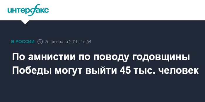 Москва. 25 февраля. INTERFAX.RU - Амнистия, которую предлагается объявить в связи с 65-летием Победы в Великой Отечественной войне, коснется примерно 300 тыс. россиян, сообщил глава комитета Госдумы по законодательству, сопредседатель Ассоциации юристов России Павел Крашенинников.