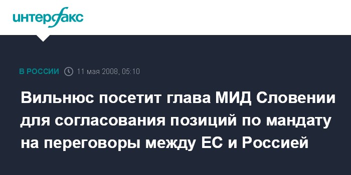 Вильнюс. 11 мая. ИНТЕРФАКС/BNS - Министр иностранных дел председательствующей сейчас в ЕС Словении Дмитрий Рупел в воскресенье и понедельник будет находиться с визитом в Вильнюсе.