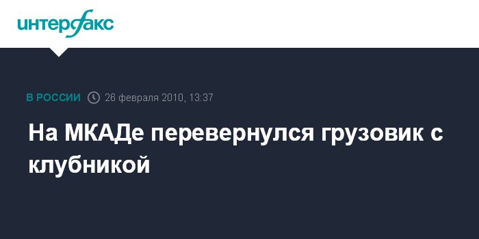 Москва. 26 февраля. INTERFAX.RU - На Московской кольцевой автодороге в пятницу перевернулся грузовик с клубникой, чтобы убрать фуру с магистрали, понадобилось два самосвала, сообщает корреспондент "Интерфакса" с места происшествия.