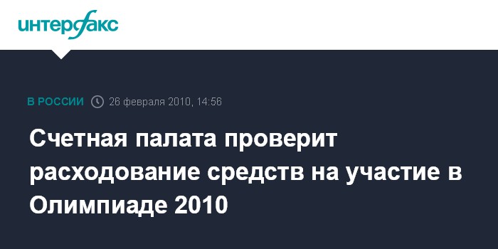 Счетная палата проверит расходование средств на участие в Олимпиаде 2010