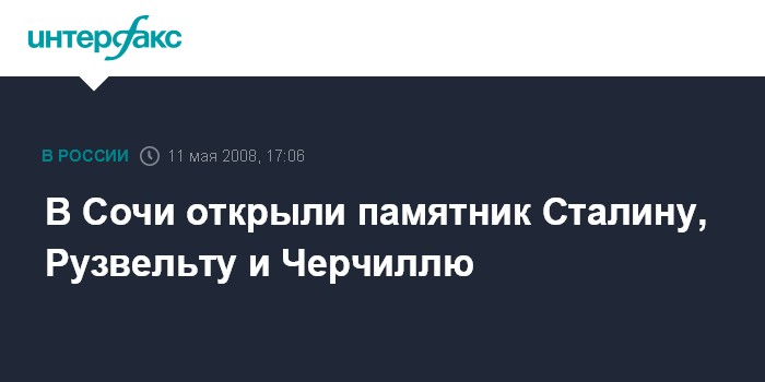 Сочи.11 мая. ИНТЕРФАКС-ЮГ - В Сочи в воскресенье состоялось торжественное открытие памятника Франклину Делано Рузвельту, Уинстону Черчиллю и Иосифу Сталину.