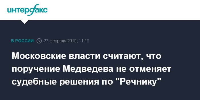 Московские власти считают, что поручение Медведева не отменяет судебные решения по "Речнику"