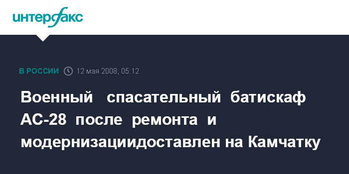 Военный спасательный батискаф АС-28 после ремонта и модернизациидоставлен на Камчатку