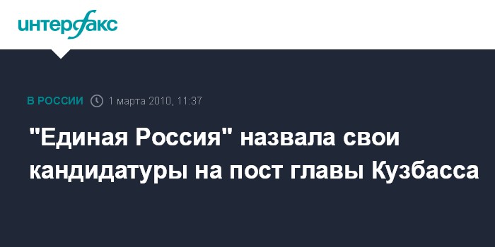 Москва. 1 марта. INTERFAX.RU - Партия "Единая Россия" предложила президенту РФ три кандидатуры на пост губернатора Кемеровской области, в том числе ныне действующего главу Амана Тулеева.