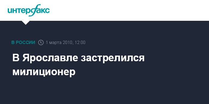 Тело милиционера роты отдельного батальона патрульно-постовой службы милиции УВД по Ярославлю было обнаружено вечером 27 февраля в квартире, где он проживал. Установлено, что в минувшую субботу в 18:30 сотрудник милиции, получил табельное оружие - пистолет ПМ - в отделе милиции для несения службы по охране общественного порядка. После этого он отправился к себе домой и на кухне выстрелил себе в голову. В настоящее время обстоятельства происшествия устанавливаются.