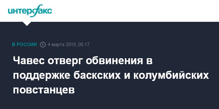 Москва. 4 марта. ИНТЕРФАКС - Президент Венесуэлы Уго Чавес отверг предположения испанского суда о поддержке баскской сепаратистской организации ЭТА и левых повстанцев из группировки Революционные вооруженные силы Колумбии (FARC), передает британская корпорация Би-би-си.