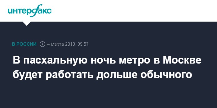 В пасхальную ночь метро в Москве будет работать дольше обычного