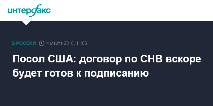 Посол США: договор по СНВ вскоре будет готов к подписанию