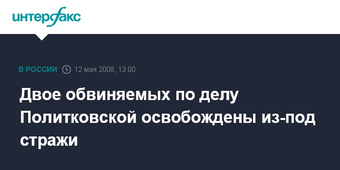 Москва. 12 мая. INTERFAX.RU - Из девяти обвиняемых по делу об убийстве обозревателя "Новой газеты" Анны Политковской двое освобождены из-под стражи, сообщает "Интерфакс". "Мера пресечения изменена двум обвиняемым из девяти - Галкину и Демельханову", - заявил в понедельник журналистам в Мосгорсуде представитель Генпрокуратуры Вячеслав Смирнов.