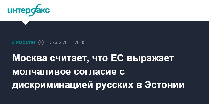 Москва считает, что ЕС выражает молчаливое согласие с дискриминацией русских в Эстонии