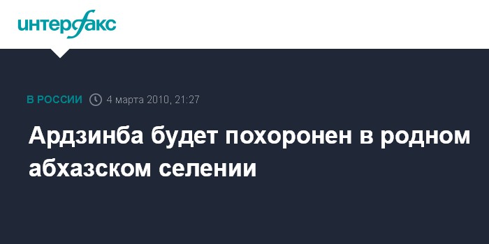 Москва. 4 марта. INTERFAX.RU - Первый президент Абхазии Владислав Ардзинба, скончавшийся в четверг в Москве, завещал похоронить себя на берегу реки Гумиста, по которой в 1992-1993 гг. во время грузино-абхазского конфликта проходила линия фронта. "Еще несколько лет назад он (Ардзинба - ИФ) составил бумагу, в которой просил похоронить себя в родном селе Нижние Эшеры недалеко от реки Гумиста, где во время грузино-абхазской войны проходила линия фронта и сражались наши ребята", - сообщила "Интерфаксу" вдова Ардзинба Светлана, добавив, что она намерена выполнить волю покойного супруга.
