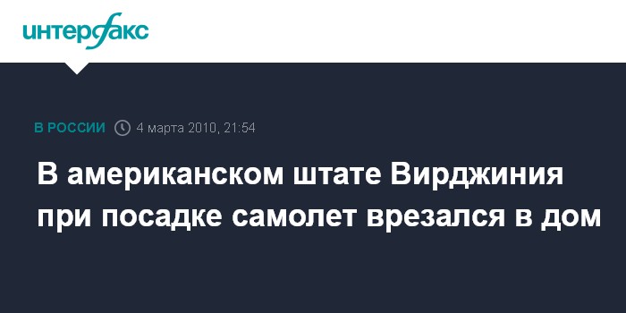 В американском штате Вирджиния при посадке самолет врезался в дом