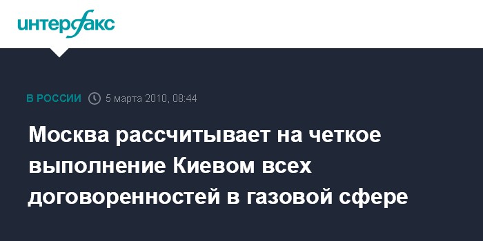 Москва рассчитывает на четкое выполнение Киевом всех договоренностей в газовой сфере