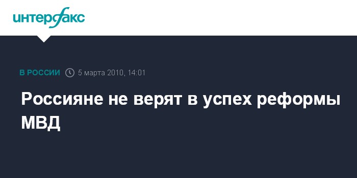 В то, что эти отставки действительно являются началом радикальной реформы МВД, верят 26% россиян, опрошенных социологами 26 февраля - 2 марта.