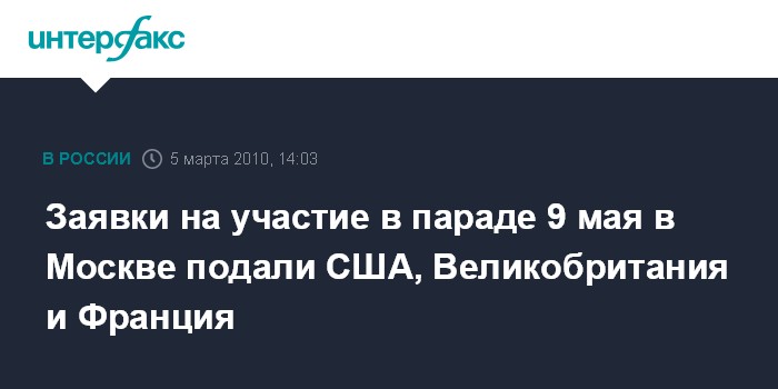 Заявки на участие в параде 9 мая в Москве подали США, Великобритания и Франция