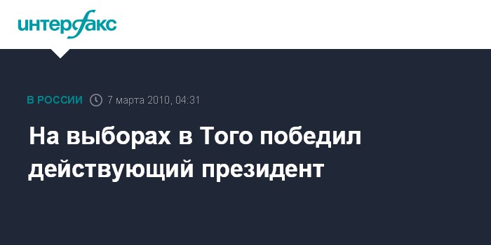 Москва. 7 марта. ИНТЕРФАКС - ЦИК Того объявил о победе в президентских выборах действующего главы государства Форэ Гнассингбе, сообщает в воскресенье британская телерадиокорпорация "Би-би-си".