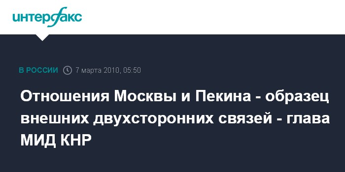 Отношения Москвы и Пекина - образец внешних двухсторонних связей - глава МИД КНР