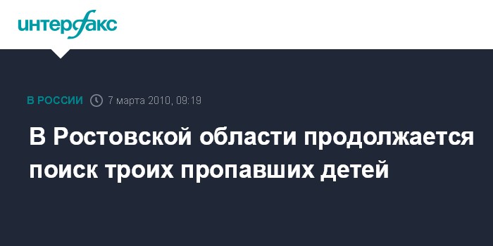 Ростов-на-Дону. 7 марта. ИНТЕРФАКС-ЮГ - Продолжается поиск троих детей, пропавших на хуторе Клочково Миллеровского района Ростовской области.