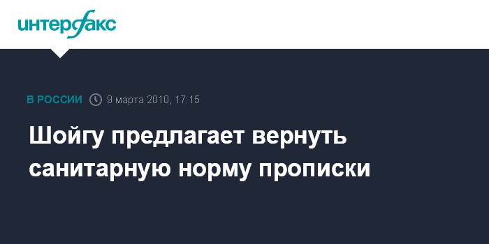 Москва. 9 марта. INTERFAX.RU - Глава МЧС Сергей Шойгу предлагает снова узаконить санитарную норму прописки граждан.