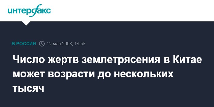 "Только в уезде Бэйчуань жертвы могут составить от трех до пяти тысяч человек, а число раненых превысить 10 тысяч человек", - говорится в срочном сообщении, опубликованном на сайте официального агентства "Синьхуа".