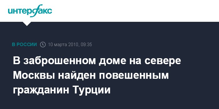 Москва. 10 марта. INTERFAX.RU – Труп гражданина Турции найден во вторник вечером на севере столицы в заброшенном доме, сообщил "Интерфаксу" источник в правоохранительных органах города.