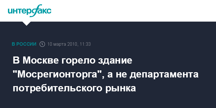 В Москве горело здание "Мосрегионторга", а не департамента потребительского рынка