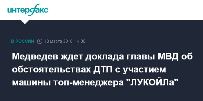 Медведев ждет доклада главы МВД об обстоятельствах ДТП с участием машины топ-менеджера "ЛУКОЙЛа"