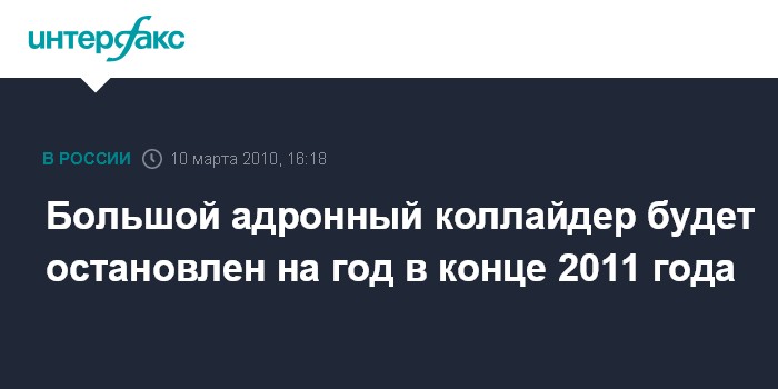 Москва. 10 марта. INTERFAX.RU - Из-за ошибок, допущенных при строительстве Большого адронного коллайдера в Швейцарии, в конце 2011 года машина должна быть закрыта на 1 год для устранения технических дефектов, заявил в интервью британской телерадиокорпорации Би-би-си директор Европейского центра ядерных исследований (ЦЕРН) в Женеве доктор Стив Майерс.