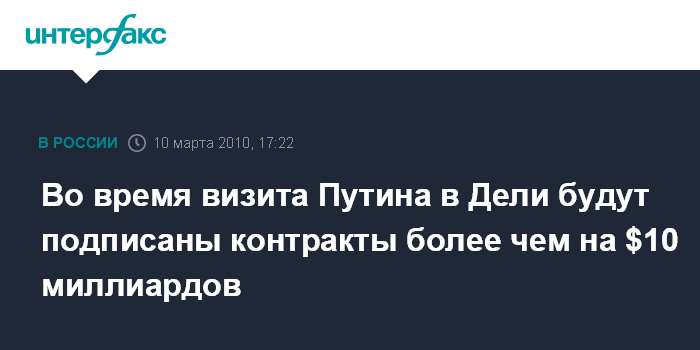 Во время визита Путина в Дели будут подписаны контракты более чем на $10 миллиардов